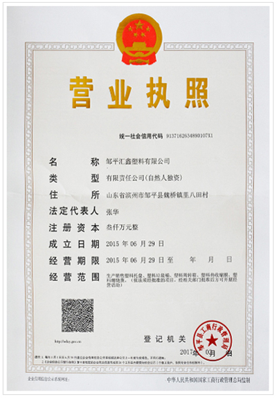 塑料托盤廠家匯鑫塑料營業執照